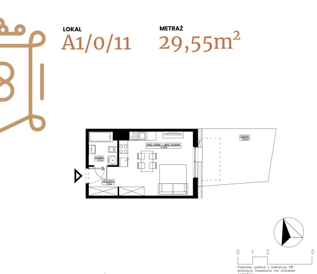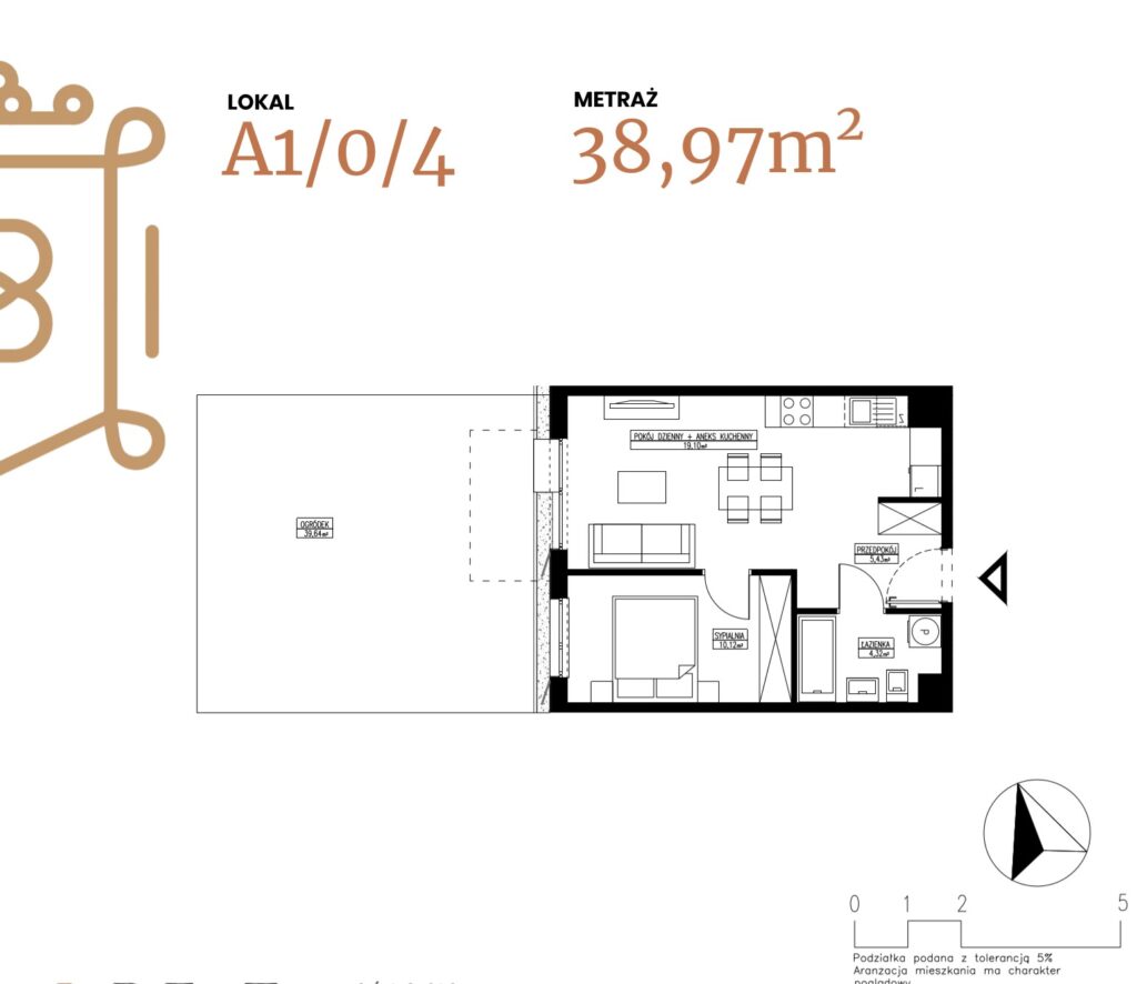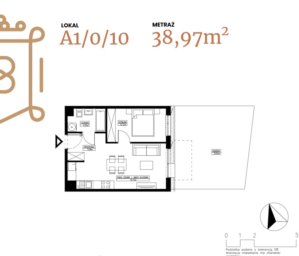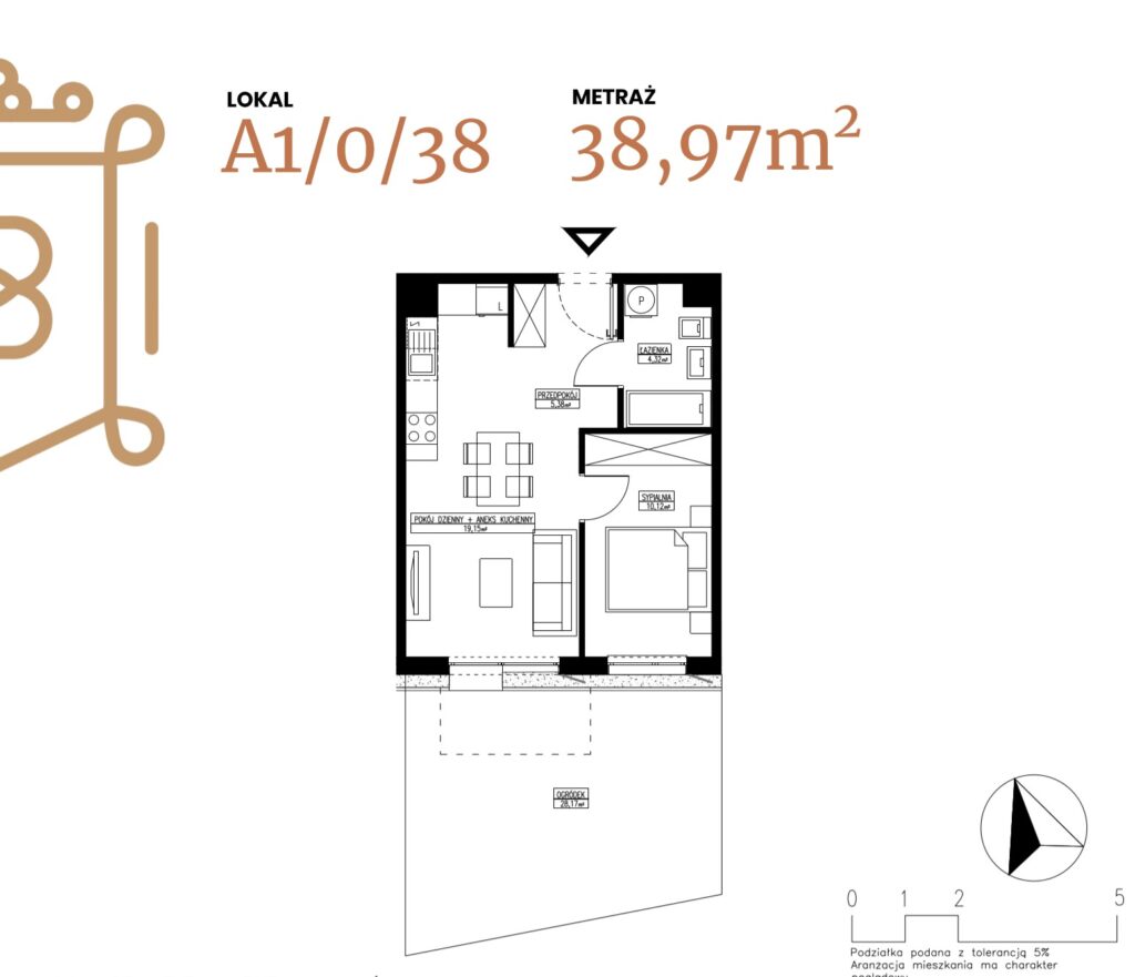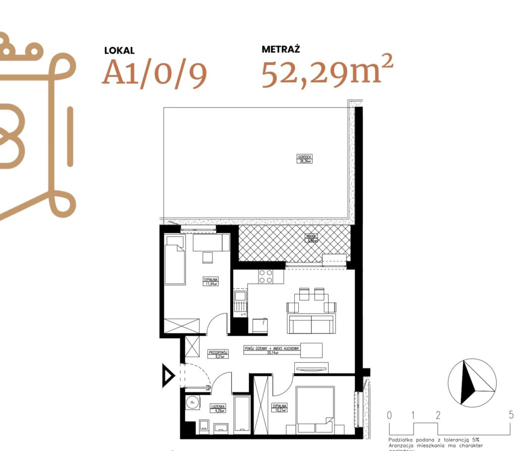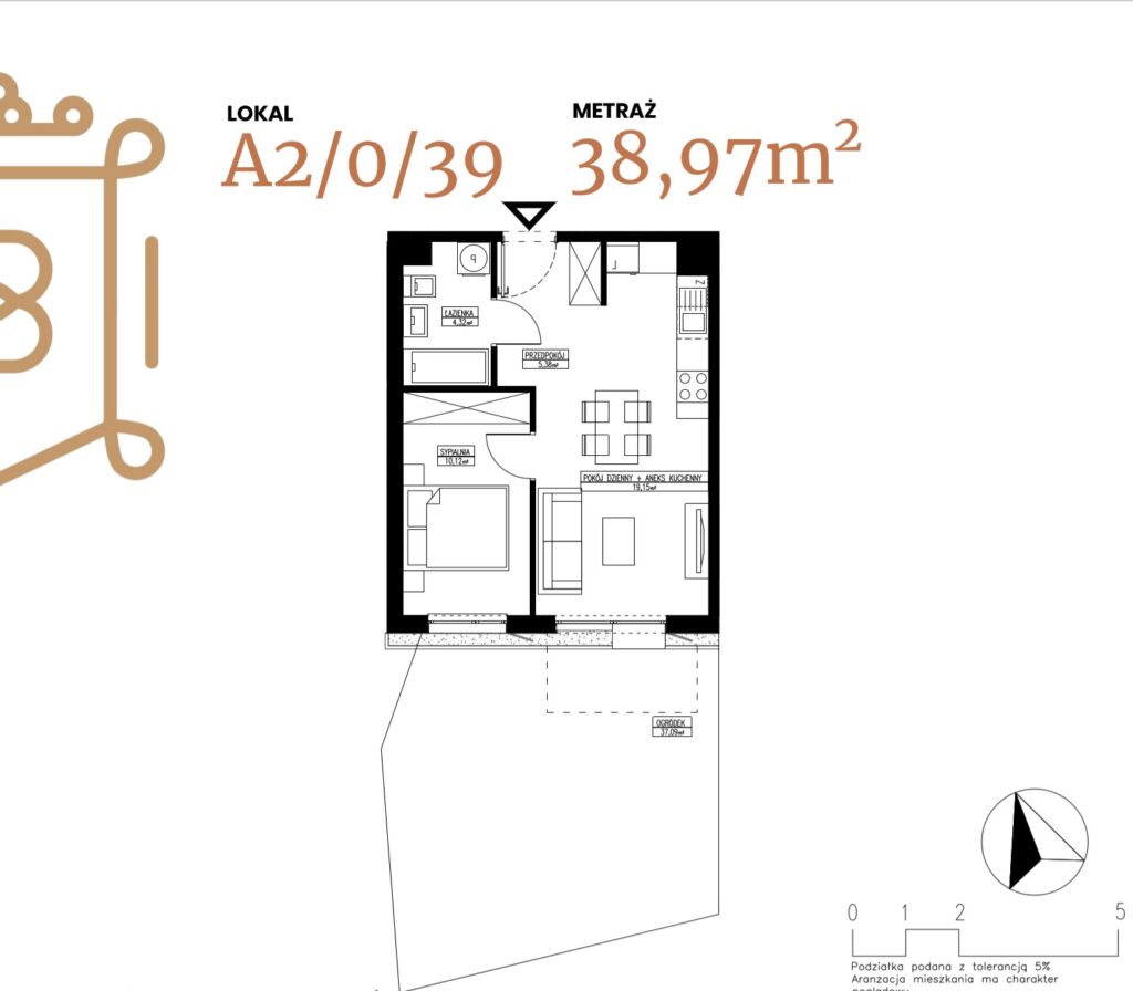 ogródek 38,38 m2; taras 6,96 m2