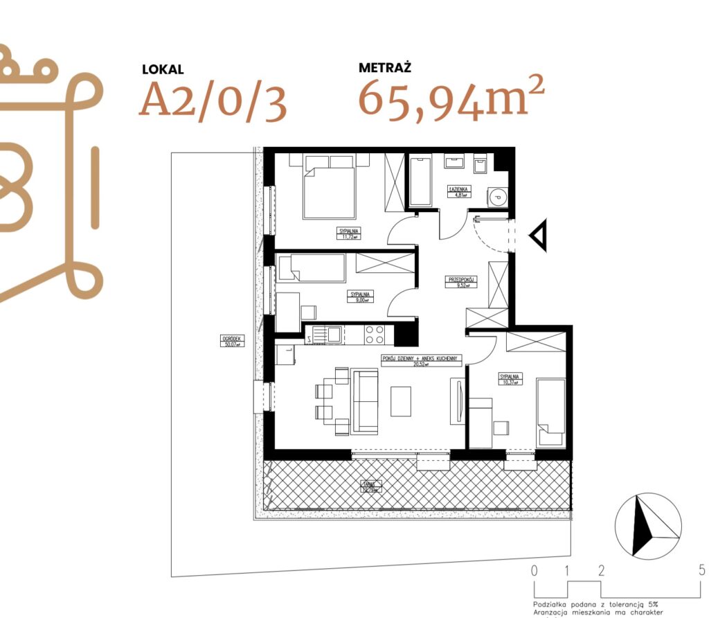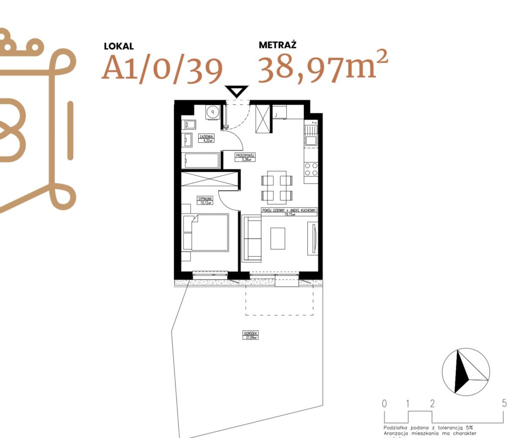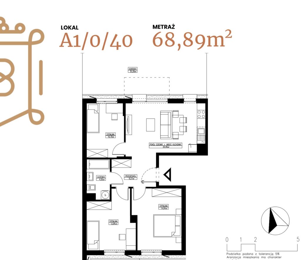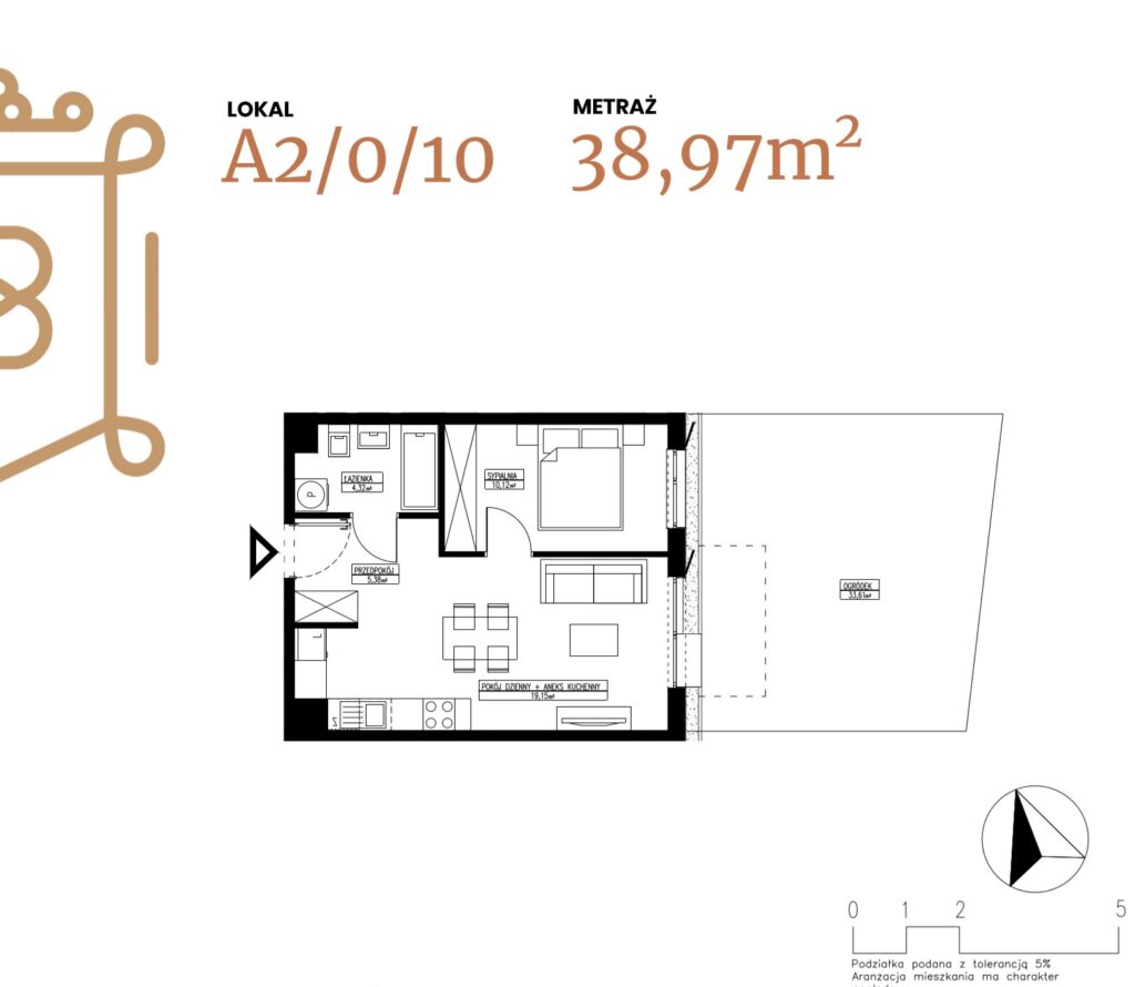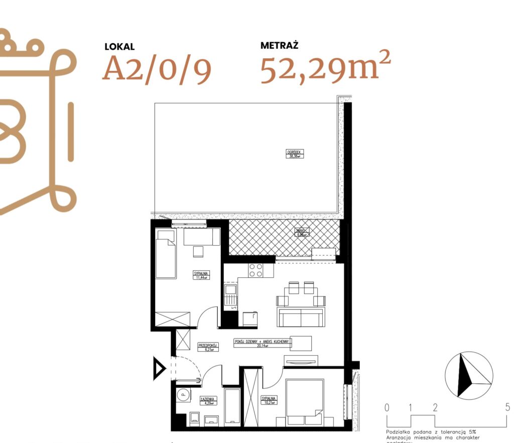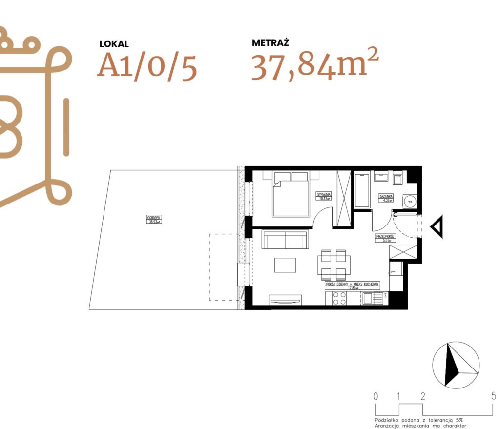 ogródek 38,38 m2; taras 6,96 m2