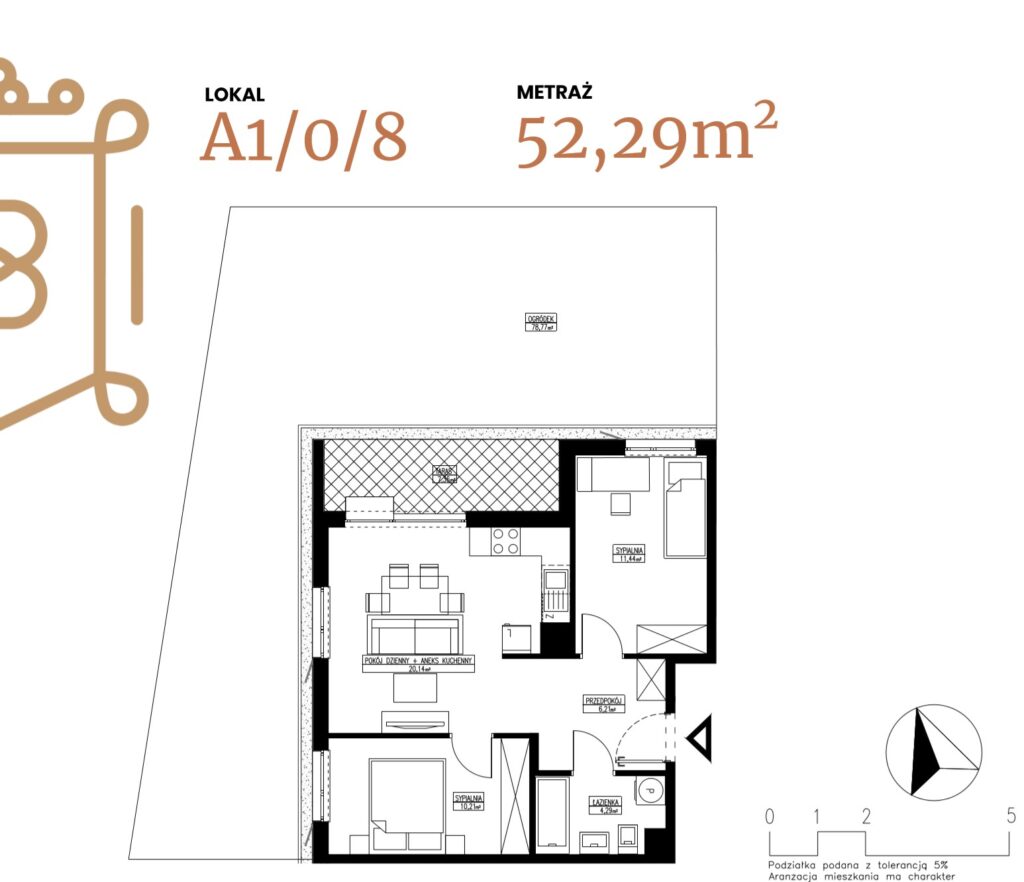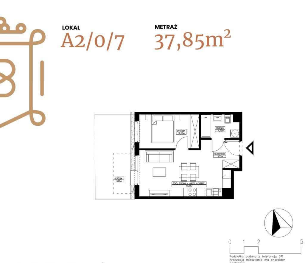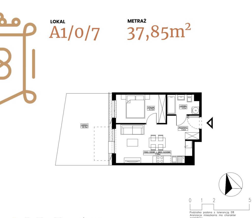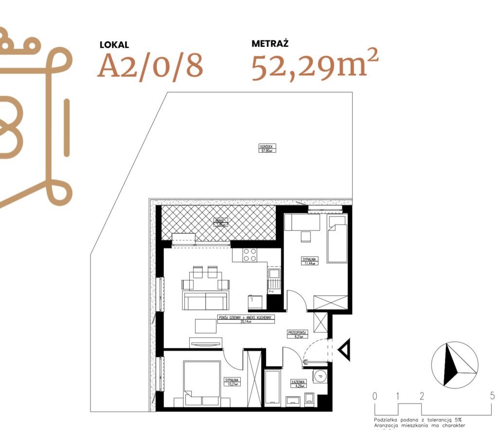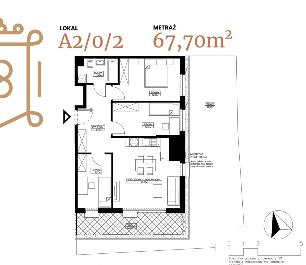 ogródek 38,38 m2; taras 6,96 m2