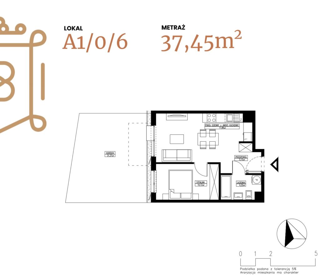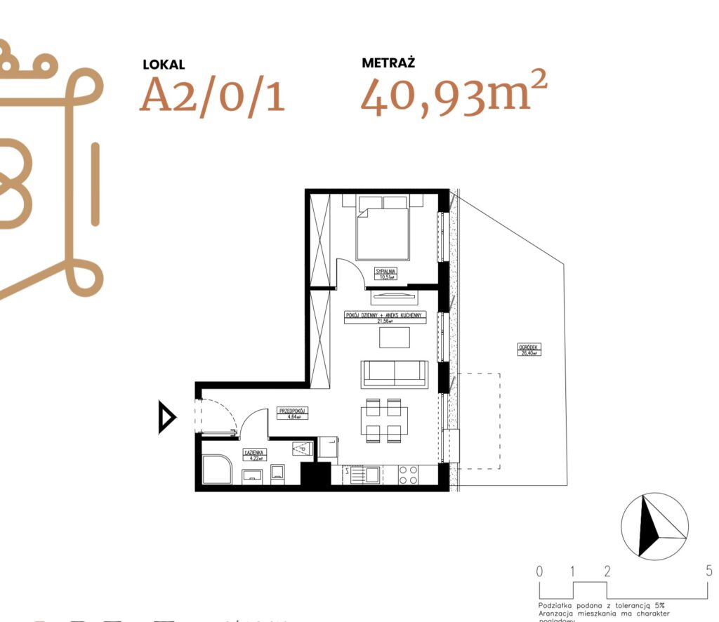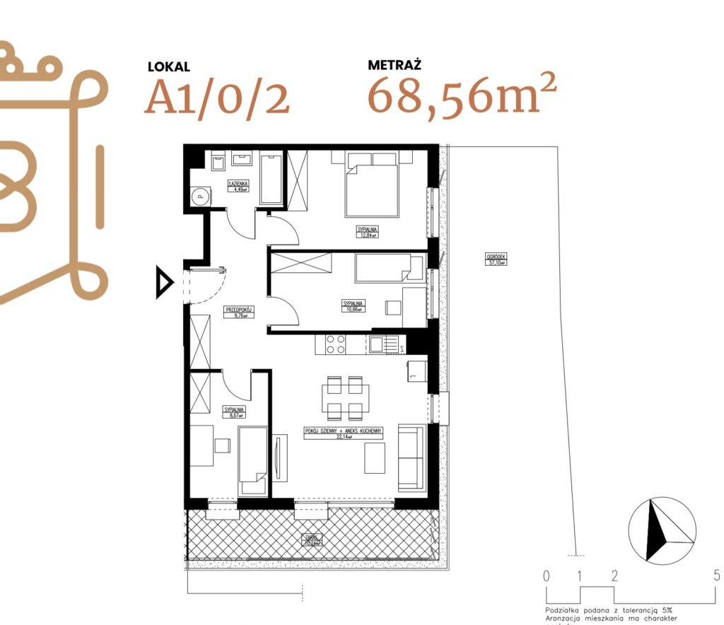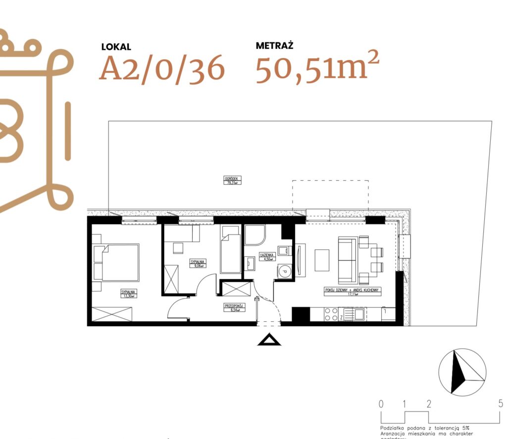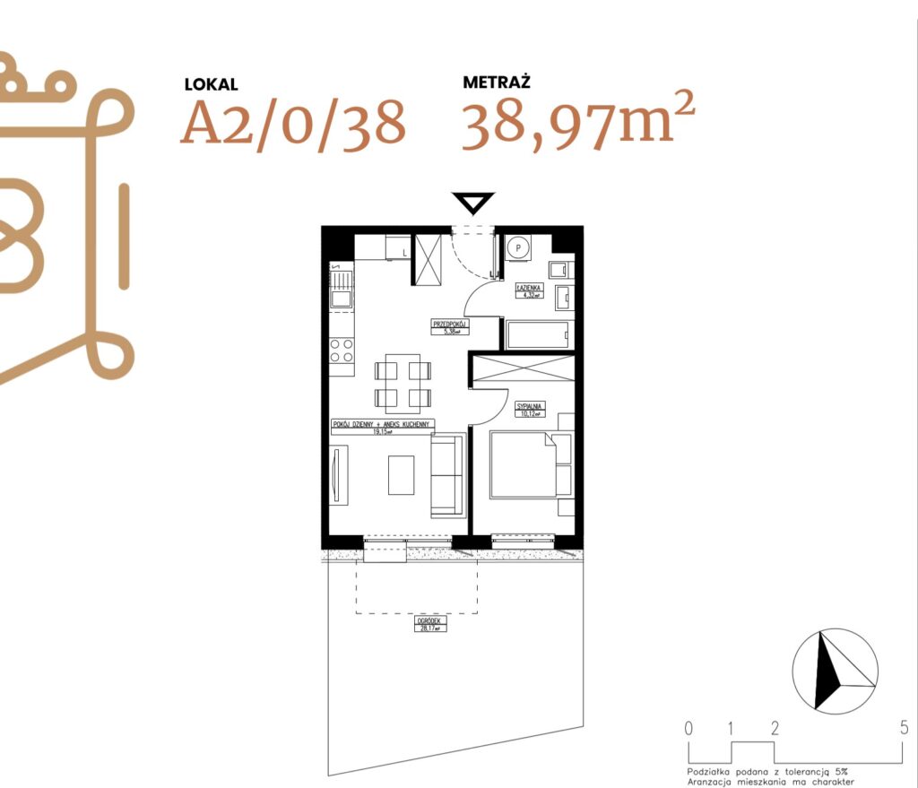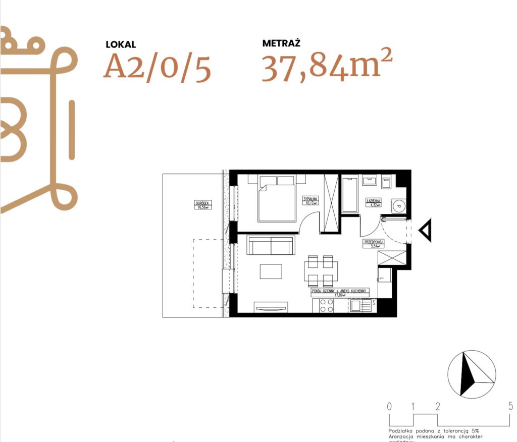 ogródek 38,38 m2; taras 6,96 m2