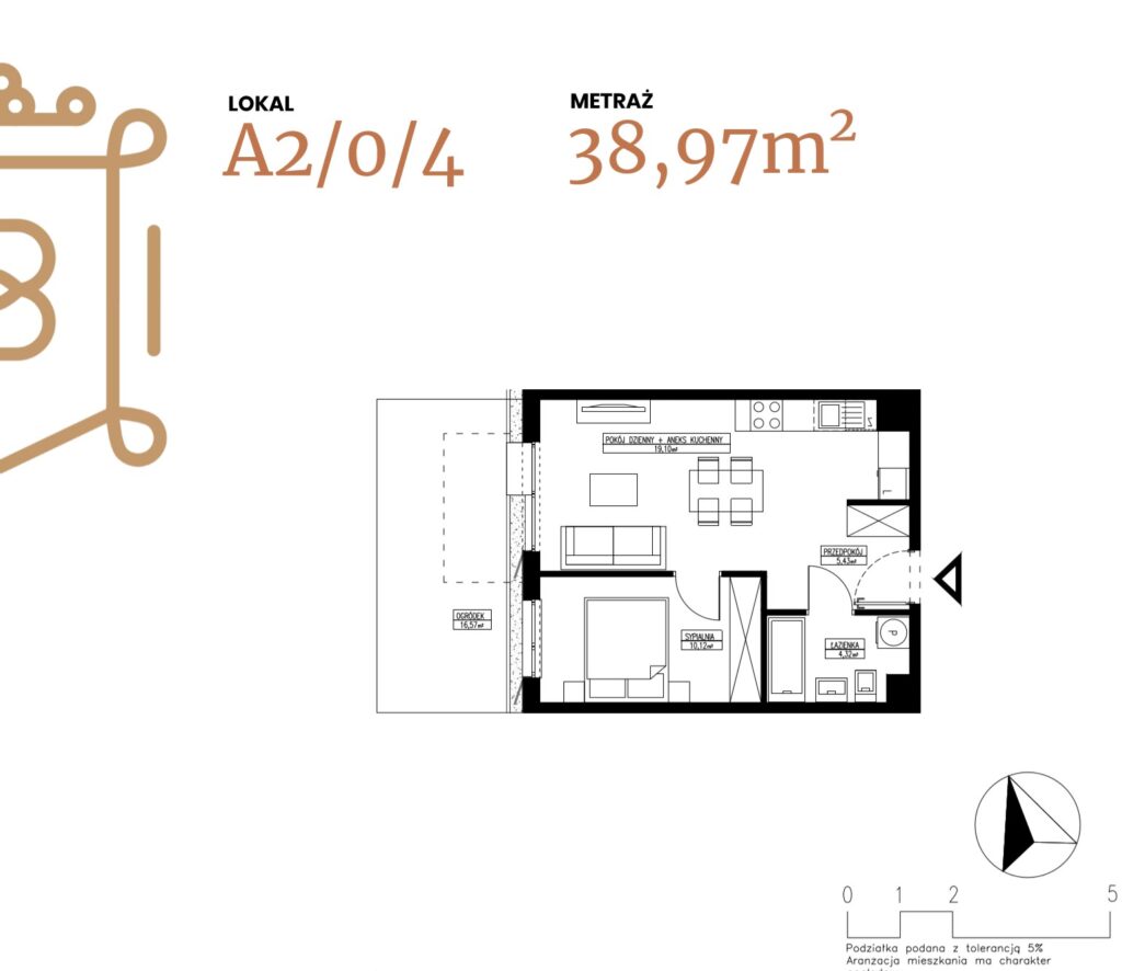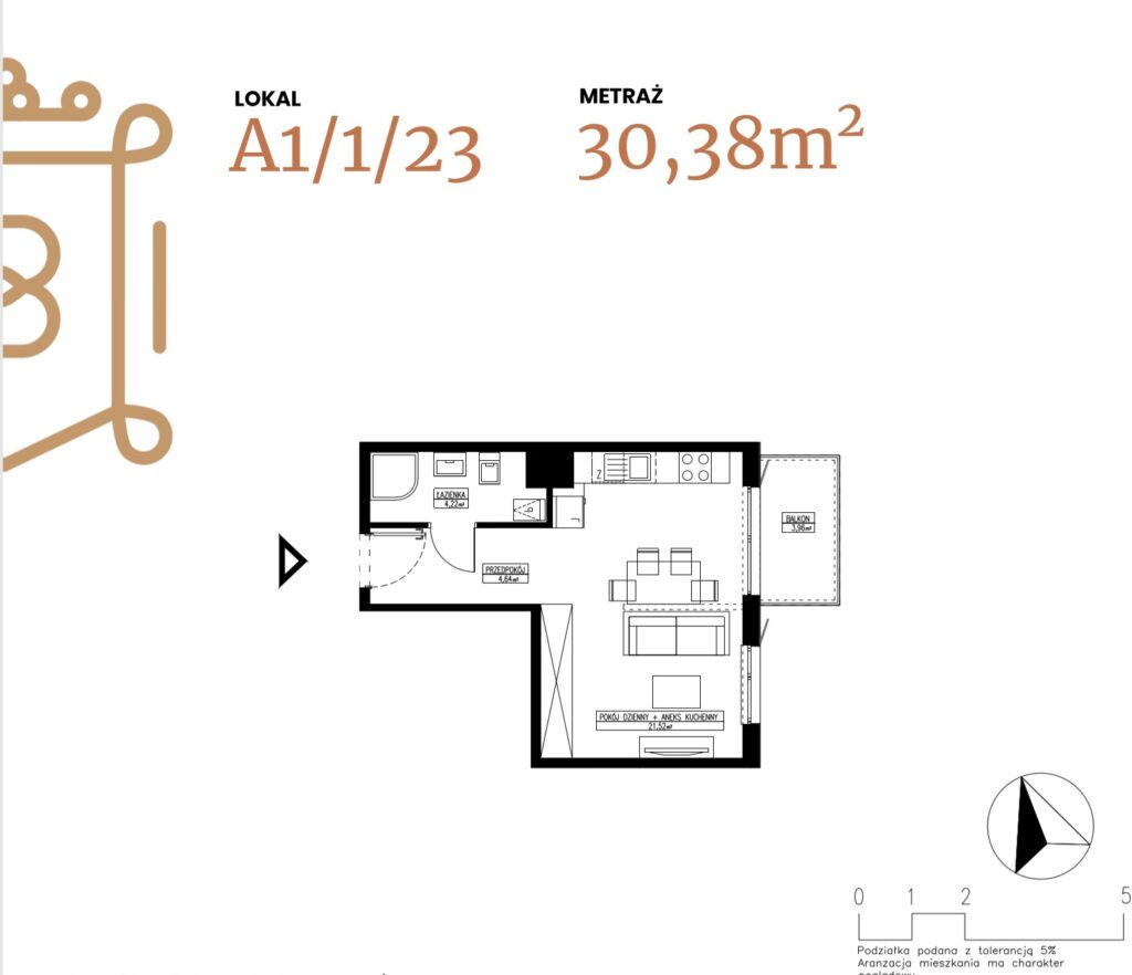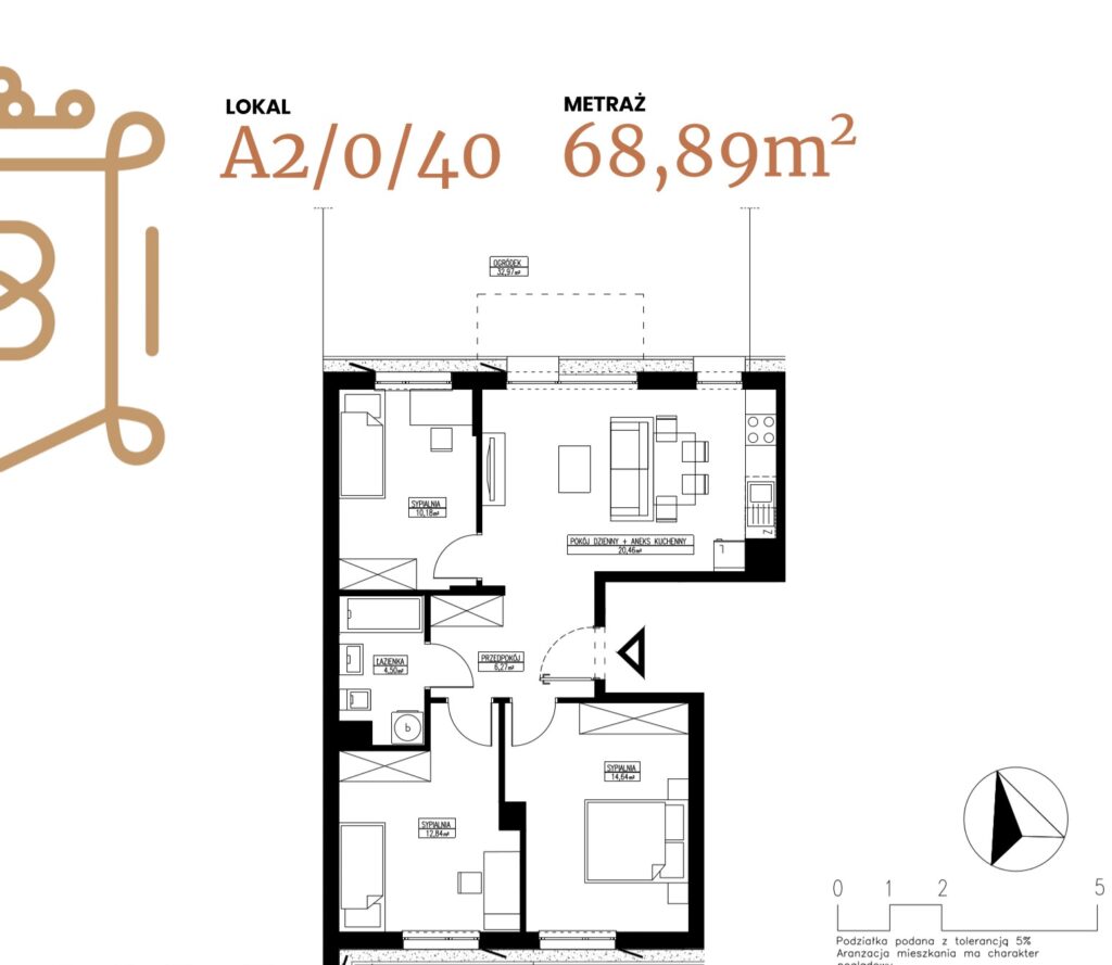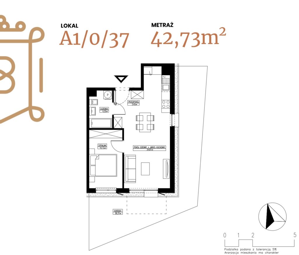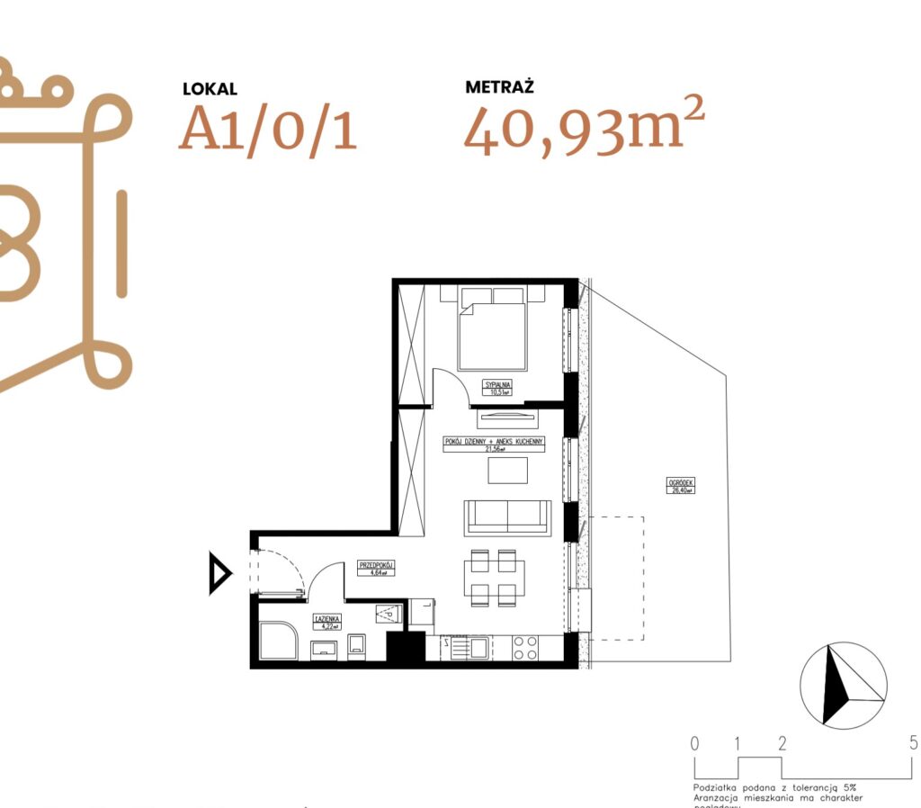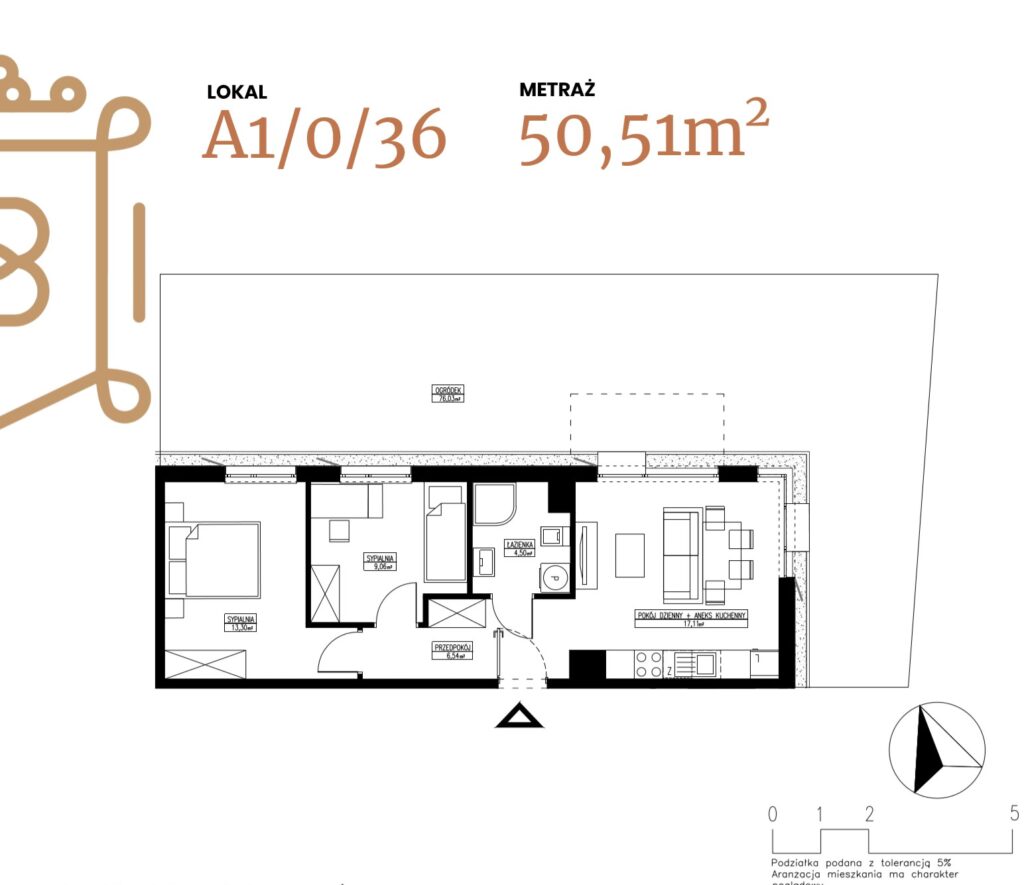 ogródek 38,38 m2; taras 6,96 m2