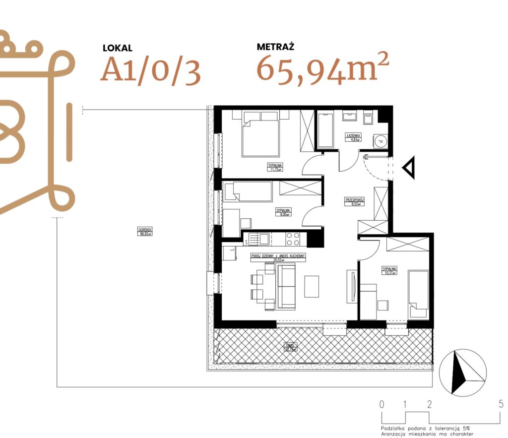 ogródek 58,04 m2 ; taras 10,24 m2